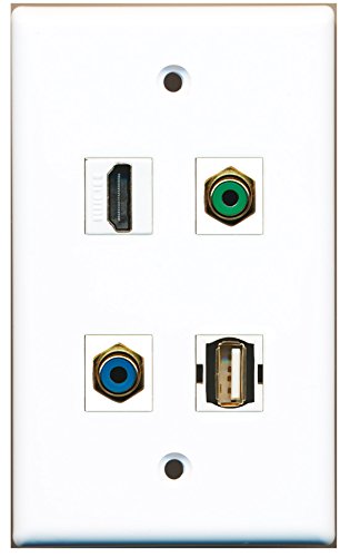 RiteAV - 1 Port HDMI 1 Port RCA Green 1 Port RCA Blue 1 Port USB A-A Wall Plate