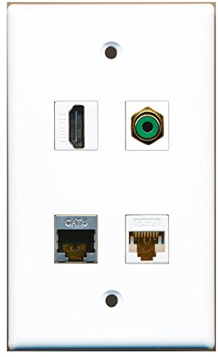 RiteAV - 1 Port HDMI 1 Port RCA Green 1 Port Shielded Cat6 Ethernet 1 Port Cat6 Ethernet White Wall Plate