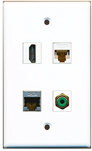 RiteAV - 1 Port HDMI 1 Port RCA Green 1 Port Shielded Cat6 Ethernet 1 Port Cat6 Ethernet White Wall Plate