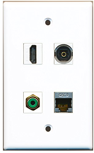 RiteAV - 1 Port HDMI 1 Port RCA Green 1 Port Shielded Cat6 Ethernet 1 Port Toslink Wall Plate