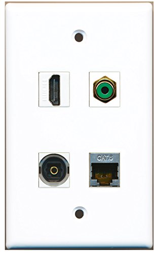 RiteAV - 1 Port HDMI 1 Port RCA Green 1 Port Shielded Cat6 Ethernet 1 Port Toslink Wall Plate