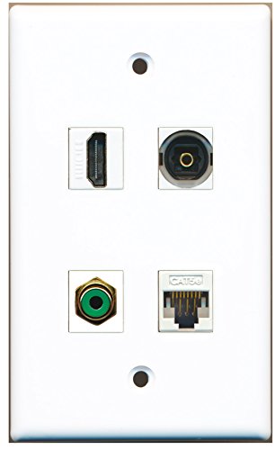 RiteAV - 1 Port HDMI 1 Port RCA Green 1 Port Toslink Digital Audio 1 Port Cat5e Ethernet White Wall Plate