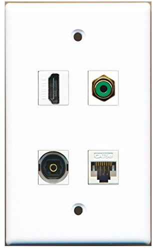 RiteAV - 1 Port HDMI 1 Port RCA Green 1 Port Toslink Digital Audio 1 Port Cat5e Ethernet White Wall Plate