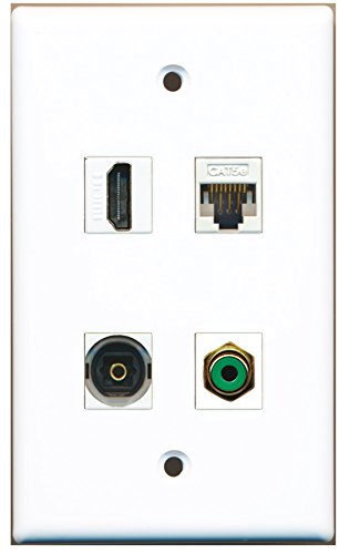 RiteAV - 1 Port HDMI 1 Port RCA Green 1 Port Toslink 1 Port Cat5e Ethernet White Wall Plate