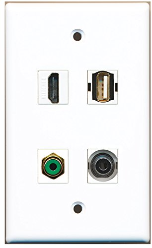 RiteAV - 1 Port HDMI 1 Port RCA Green 1 Port USB A-A 1 Port 3.5mm Wall Plate