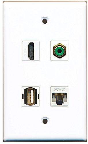RiteAV - 1 Port HDMI 1 Port RCA Green 1 Port USB A-A 1 Port Cat5e Ethernet White Wall Plate