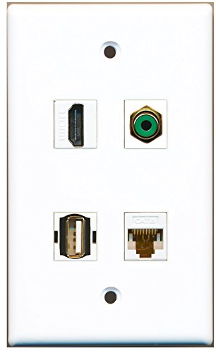 RiteAV - 1 Port HDMI 1 Port RCA Green 1 Port USB A-A 1 Port Cat6 Ethernet White Wall Plate