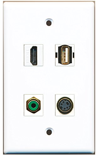 RiteAV - 1 Port HDMI 1 Port RCA Green 1 Port USB A-A 1 Port S-Video Wall Plate