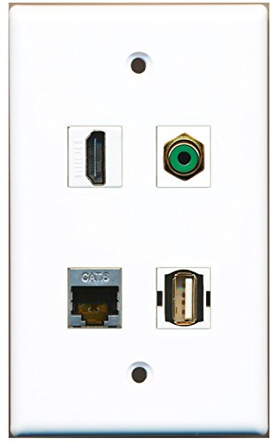 RiteAV - 1 Port HDMI 1 Port RCA Green 1 Port USB A-A 1 Port Shielded Cat6 Ethernet Wall Plate