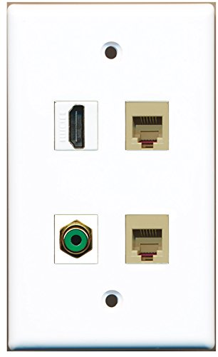 RiteAV - 1 Port HDMI 1 Port RCA Green 2 Port Phone RJ11 RJ12 Beige Wall Plate