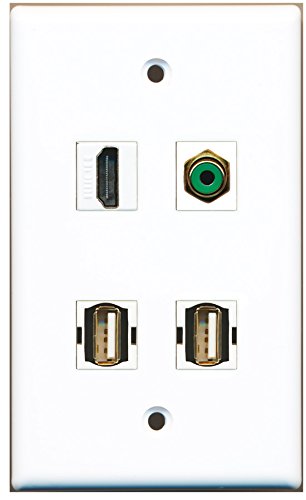 RiteAV - 1 Port HDMI 1 Port RCA Green 2 Port USB A-A Wall Plate
