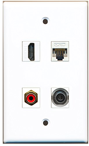RiteAV - 1 Port HDMI 1 Port RCA Red 1 Port 3.5mm 1 Port Cat5e Ethernet White Wall Plate