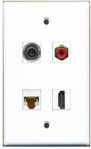 RiteAV - 1 Port HDMI 1 Port RCA Red 1 Port 3.5mm 1 Port Cat6 Ethernet White Wall Plate