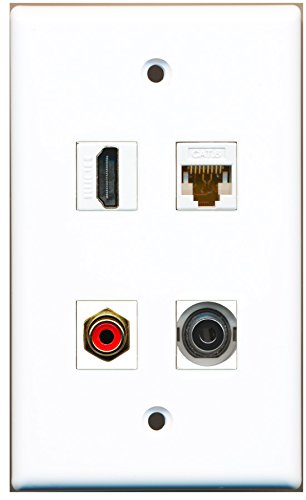 RiteAV - 1 Port HDMI 1 Port RCA Red 1 Port 3.5mm 1 Port Cat6 Ethernet White Wall Plate