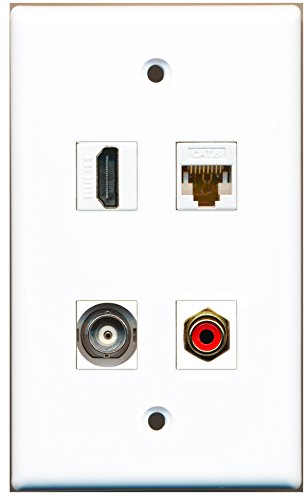 RiteAV - 1 Port HDMI 1 Port RCA Red 1 Port BNC 1 Port Cat6 Ethernet White Wall Plate