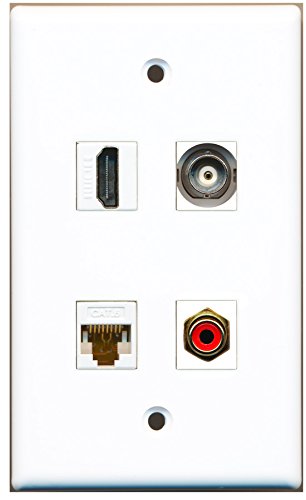 RiteAV - 1 Port HDMI 1 Port RCA Red 1 Port BNC 1 Port Cat6 Ethernet White Wall Plate