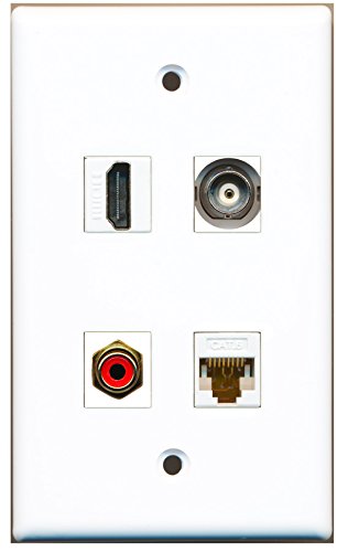 RiteAV - 1 Port HDMI 1 Port RCA Red 1 Port BNC 1 Port Cat6 Ethernet White Wall Plate