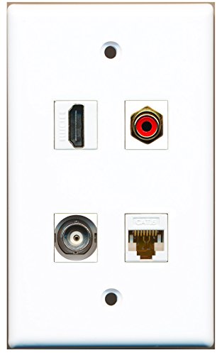 RiteAV - 1 Port HDMI 1 Port RCA Red 1 Port BNC 1 Port Cat6 Ethernet White Wall Plate