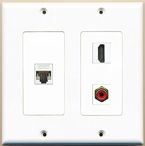 RiteAV - 1 Port HDMI 1 Port RCA Red 1 Port Cat5e Ethernet White - 2 Gang Wall Plate