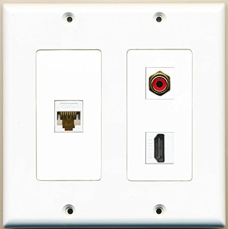 RiteAV - 1 Port HDMI 1 Port RCA Red 1 Port Cat6 Ethernet White - 2 Gang Wall Plate