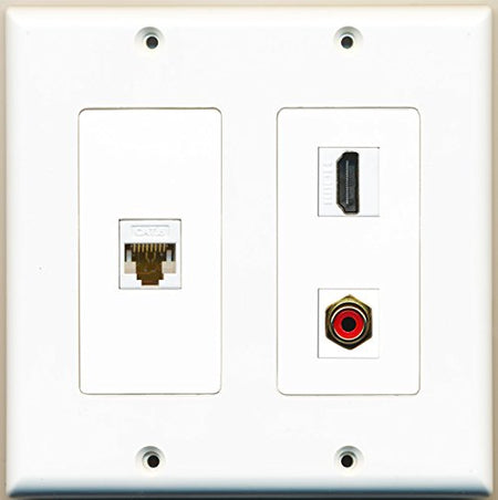 RiteAV - 1 Port HDMI 1 Port RCA Red 1 Port Cat6 Ethernet White - 2 Gang Wall Plate