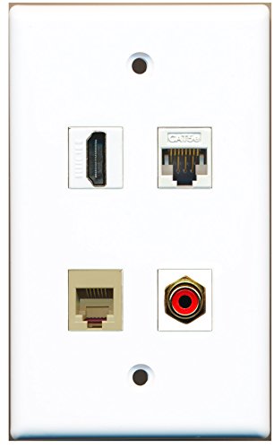 RiteAV - 1 Port HDMI 1 Port RCA Red 1 Port Phone RJ11 RJ12 Beige 1 Port Cat5e Ethernet White Wall Plate