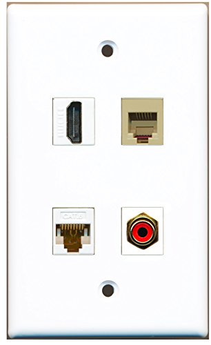 RiteAV - 1 Port HDMI 1 Port RCA Red 1 Port Phone RJ11 RJ12 Beige 1 Port Cat6 Ethernet White Wall Plate