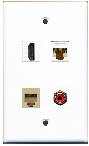RiteAV - 1 Port HDMI 1 Port RCA Red 1 Port Phone RJ11 RJ12 Beige 1 Port Cat6 Ethernet White Wall Plate