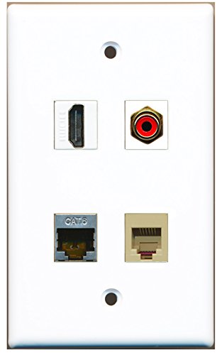 RiteAV - 1 Port HDMI 1 Port RCA Red 1 Port Phone RJ11 RJ12 Beige 1 Port Shielded Cat6 Ethernet Wall Plate