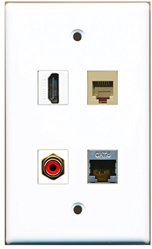 RiteAV - 1 Port HDMI 1 Port RCA Red 1 Port Phone RJ11 RJ12 Beige 1 Port Shielded Cat6 Ethernet Wall Plate