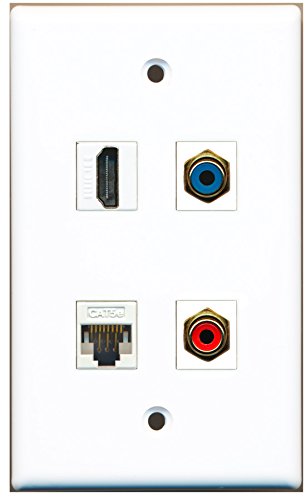 RiteAV - 1 Port HDMI 1 Port RCA Red 1 Port RCA Blue 1 Port Cat5e Ethernet White Wall Plate