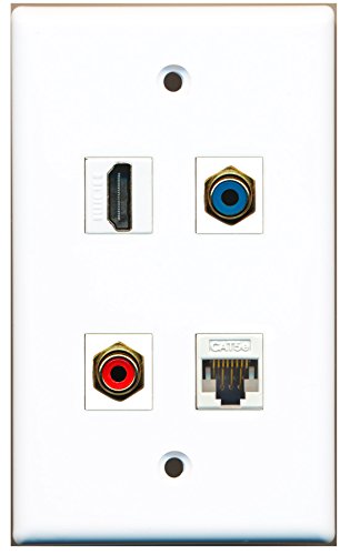 RiteAV - 1 Port HDMI 1 Port RCA Red 1 Port RCA Blue 1 Port Cat5e Ethernet White Wall Plate