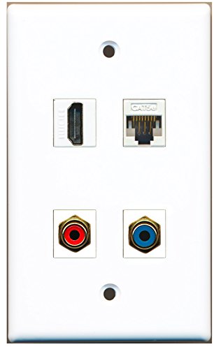 RiteAV - 1 Port HDMI 1 Port RCA Red 1 Port RCA Blue 1 Port Cat5e Ethernet White Wall Plate