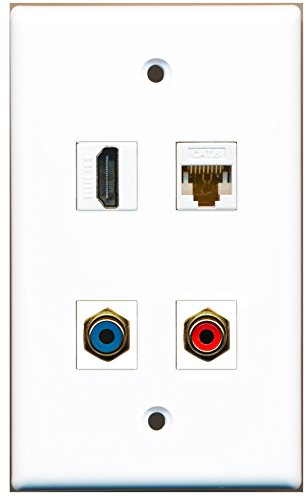 RiteAV - 1 Port HDMI 1 Port RCA Red 1 Port RCA Blue 1 Port Cat6 Ethernet White Wall Plate