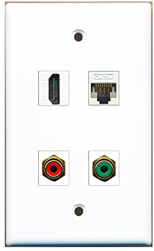 RiteAV - 1 Port HDMI 1 Port RCA Red 1 Port RCA Green 1 Port Cat5e Ethernet White Wall Plate