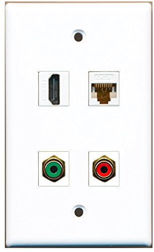 RiteAV - 1 Port HDMI 1 Port RCA Red 1 Port RCA Green 1 Port Cat6 Ethernet White Wall Plate