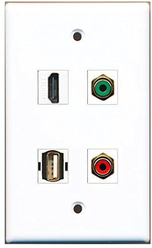 RiteAV - 1 Port HDMI 1 Port RCA Red 1 Port RCA Green 1 Port USB A-A Wall Plate
