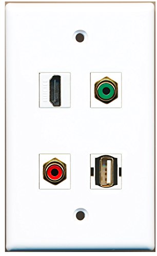 RiteAV - 1 Port HDMI 1 Port RCA Red 1 Port RCA Green 1 Port USB A-A Wall Plate