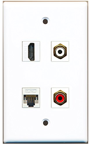 RiteAV - 1 Port HDMI 1 Port RCA Red 1 Port RCA White 1 Port Cat5e Ethernet White Wall Plate