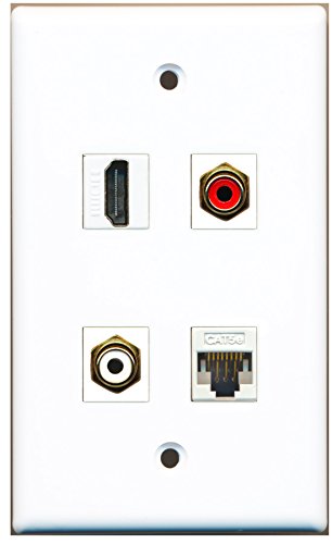 RiteAV - 1 Port HDMI 1 Port RCA Red 1 Port RCA White 1 Port Cat5e Ethernet White Wall Plate