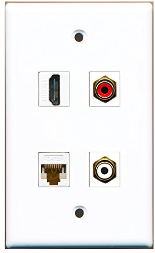 RiteAV - 1 Port HDMI 1 Port RCA Red 1 Port RCA White 1 Port Cat6 Ethernet White Wall Plate