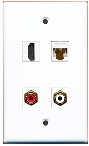RiteAV - 1 Port HDMI 1 Port RCA Red 1 Port RCA White 1 Port Cat6 Ethernet White Wall Plate