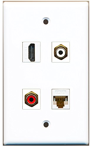 RiteAV - 1 Port HDMI 1 Port RCA Red 1 Port RCA White 1 Port Cat6 Ethernet White Wall Plate