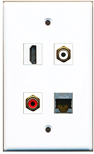 RiteAV - 1 Port HDMI 1 Port RCA Red 1 Port RCA White 1 Port Shielded Cat6 Ethernet Wall Plate