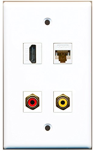RiteAV - 1 Port HDMI 1 Port RCA Red 1 Port RCA Yellow 1 Port Cat6 Ethernet White Wall Plate