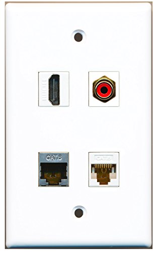 RiteAV - 1 Port HDMI 1 Port RCA Red 1 Port Shielded Cat6 Ethernet 1 Port Cat6 Ethernet White Wall Plate