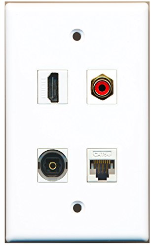 RiteAV - 1 Port HDMI 1 Port RCA Red 1 Port Toslink 1 Port Cat5e Ethernet White Wall Plate