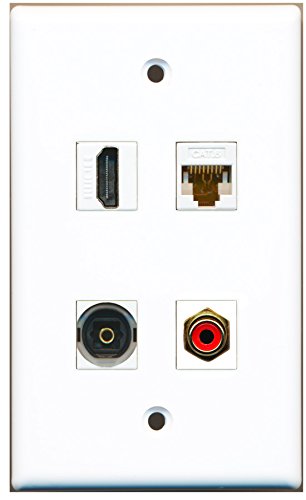 RiteAV - 1 Port HDMI 1 Port RCA Red 1 Port Toslink Digital Audio 1 Port Cat6 Ethernet White Wall Plate