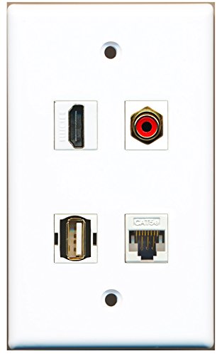 RiteAV - 1 Port HDMI 1 Port RCA Red 1 Port USB A-A 1 Port Cat5e Ethernet White Wall Plate