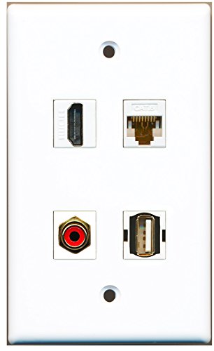 RiteAV - 1 Port HDMI 1 Port RCA Red 1 Port USB A-A 1 Port Cat6 Ethernet White Wall Plate